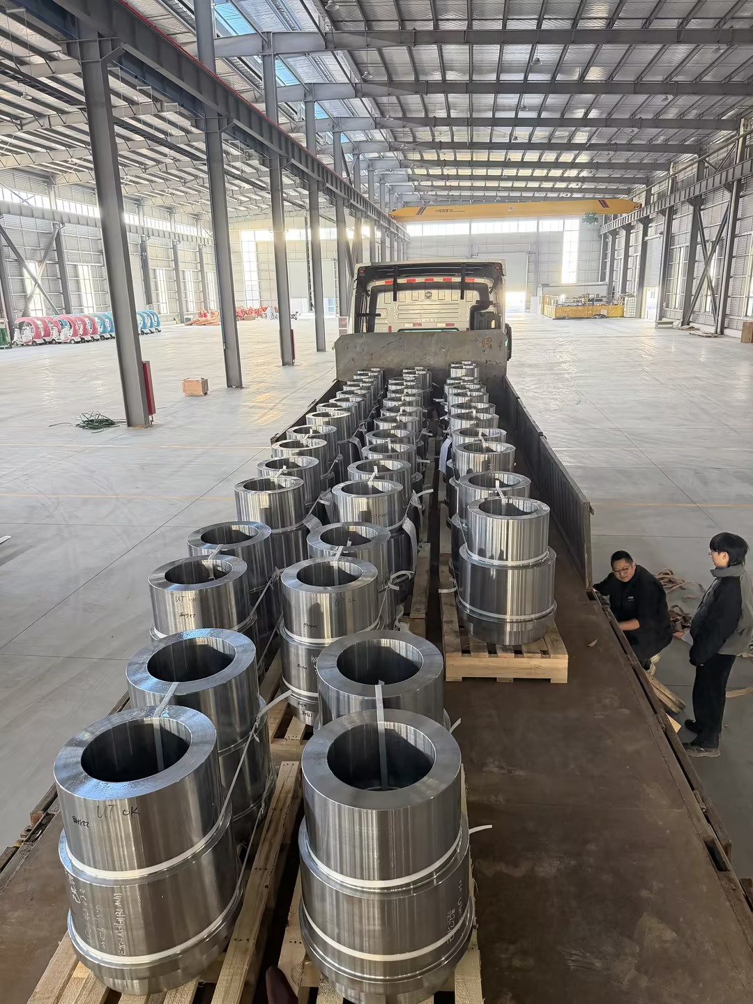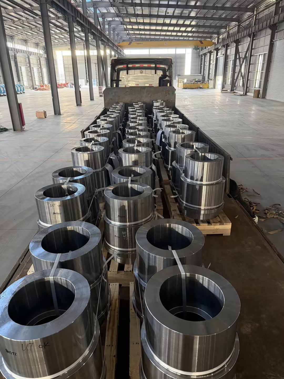 Hotové díly kovaných prstenů se nakládají a expedují